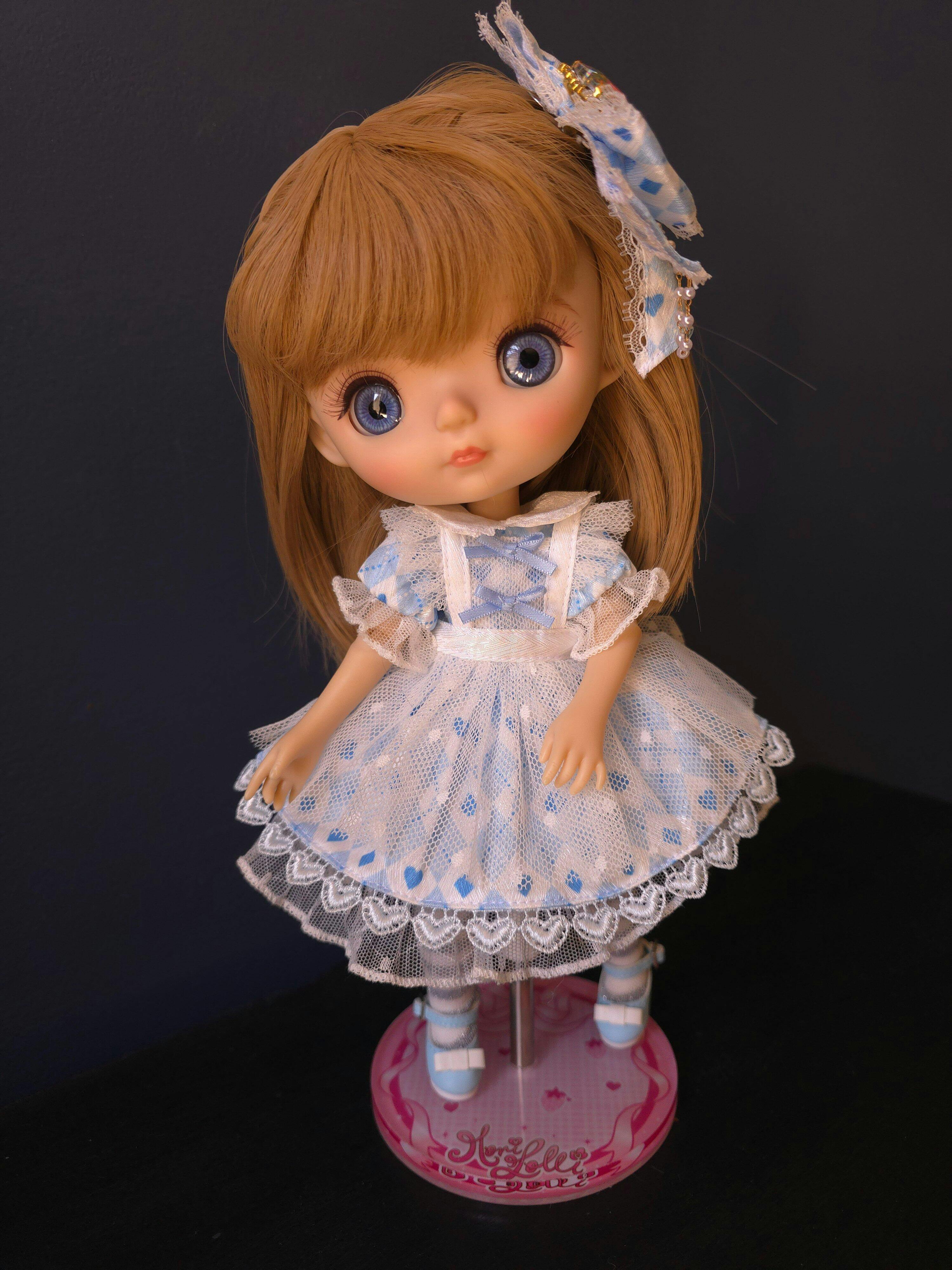 This is the cutest doll. I love her big eyes. Her outfit is lovely. I'm very pleased she's come to join my doll collection family.
