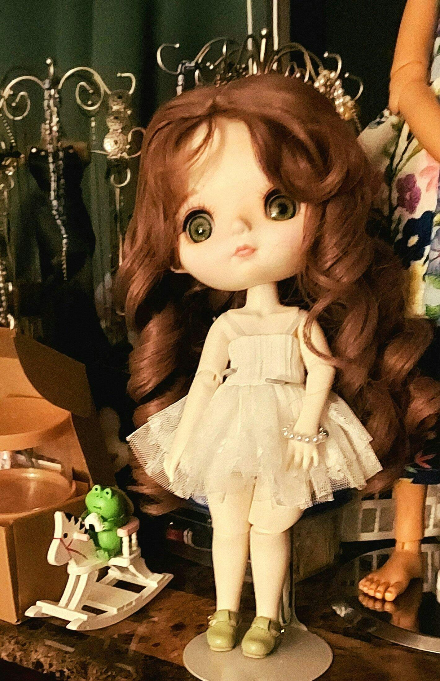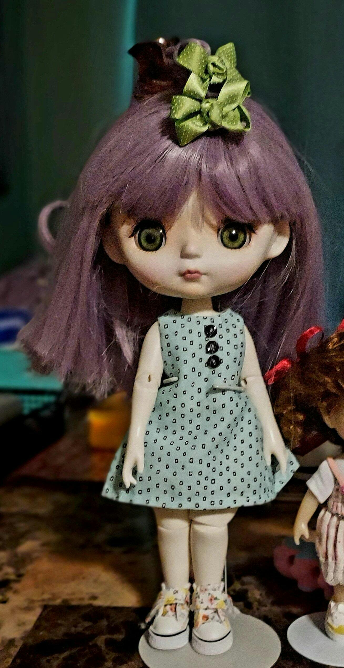 Ruby Red Fashion Friends has done it again; another exciting series of sweet fun dolls. I have 2 of these,the original dolls and have already ordered the 2 upcoming one, Mushroom and Candice. I can't wait for December. I love how soft and gentle these faces are, and how easily they can be transformed by simply changing the eyes or the wig. They can share outfits with so many of the 8 inch dolls like mini Sara or Ten Ping. So exciting. I'm in love.
