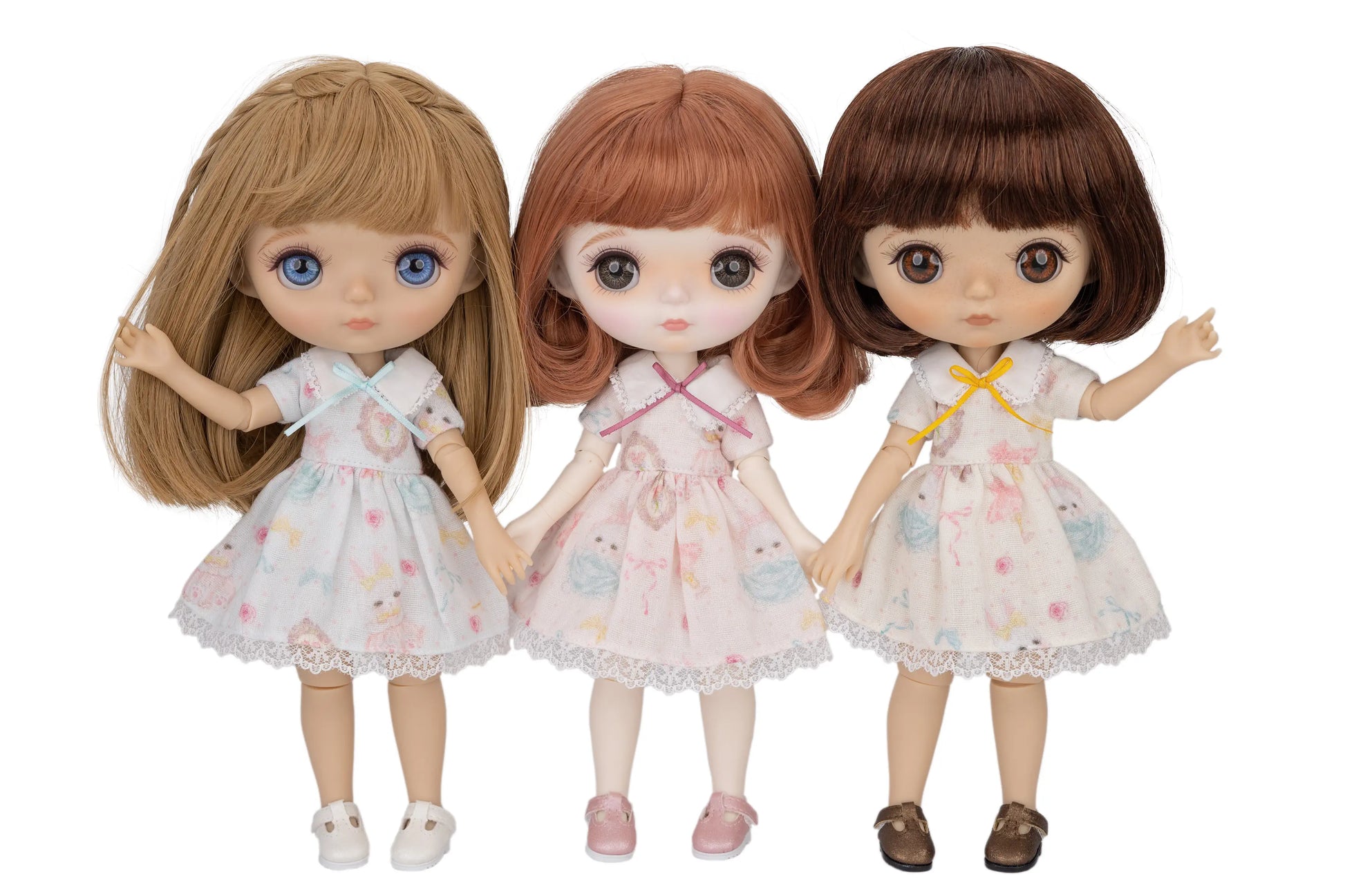 Elevate your Mori Lolli doll's wardrobe with the enchanting Hoppy Day Outfit. This delightful dress is designed in one charming style and is available in three beautiful colors: soft pastel pink, serene sky blue, and cheerful sunny yellow. Each dress features a lovely lace trim and a sweet ribbon detail, adding a touch of whimsy to your doll’s look.