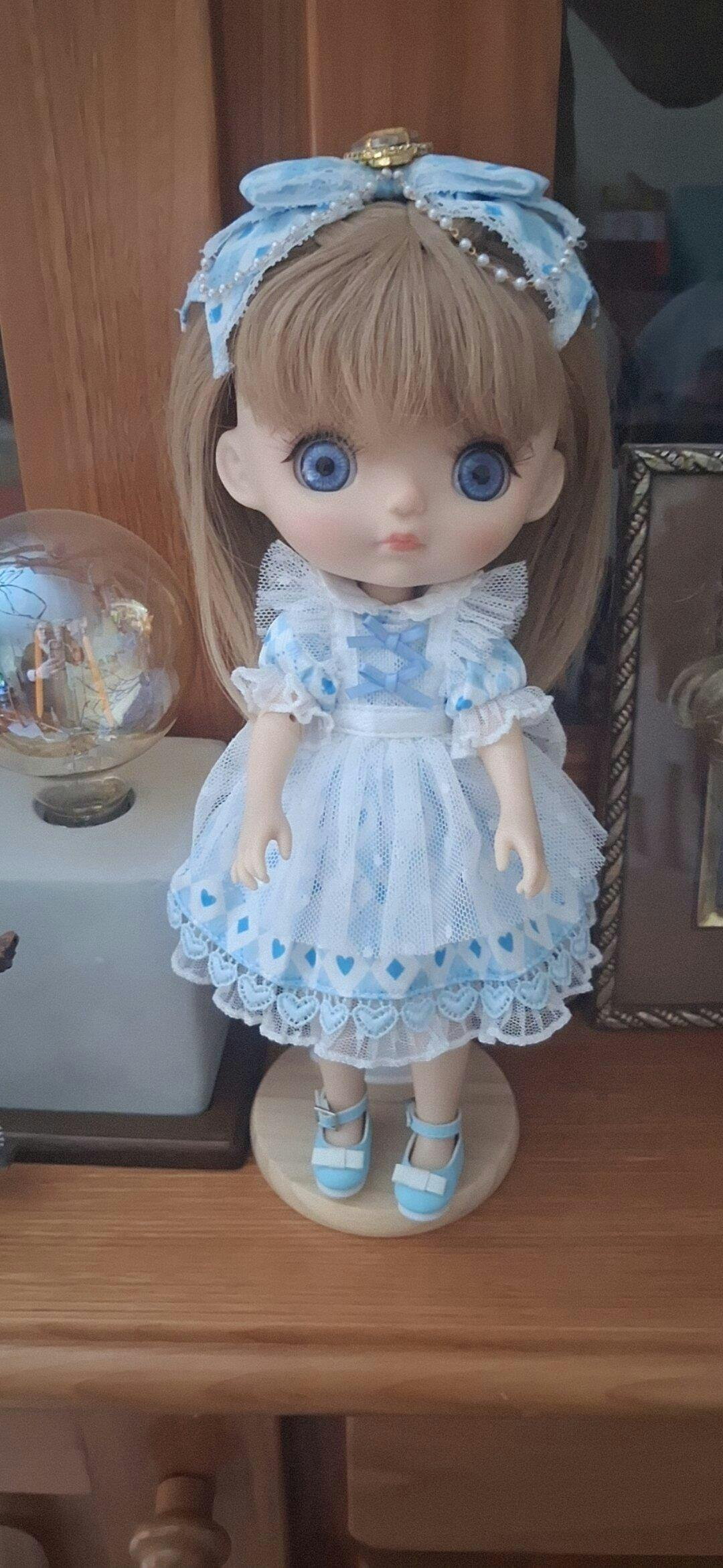 This is the cutest doll. I love her big eyes. Her outfit is lovely. I'm very pleased she's come to join my doll collection family.